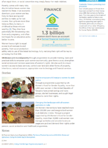 This package took several months to develop. I worked in close coordination with relevant colleagues in both policy and programme divisions to select the best topics for feature stories on the interconnections for violence against women with each of the Beijing Platform’s Critical Areas of Concern. I also reached out to field colleagues for story ideas. In the end, this In Focus package included 24 feature stories from all regions showcasing results-oriented initiatives to end violence against women. See a few sample subpages: